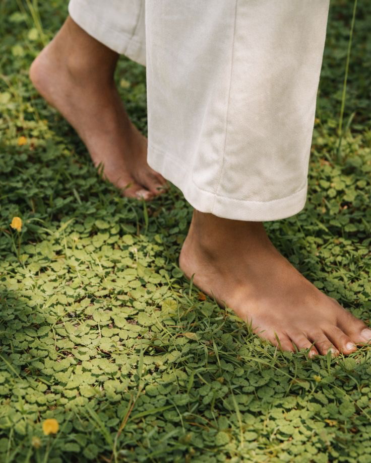 ・芝生や土の上を裸足で歩いてみる